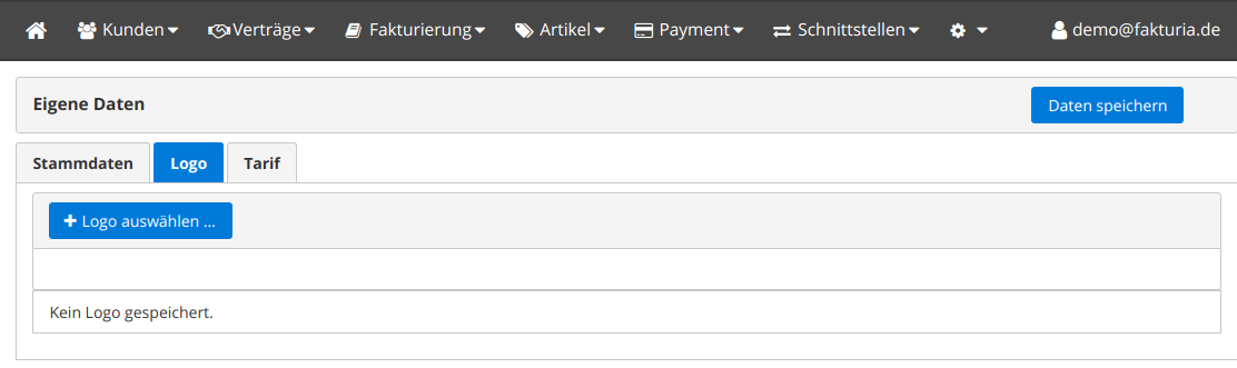 Im Tab Logo können Sie das Firmenlogo hochladen. Eine Skalierung erfolgt automatisch.