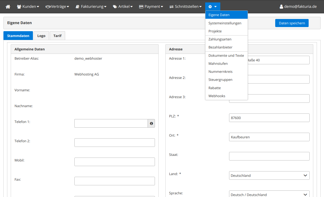 Hier pflegen Sie die Stammdaten Ihrer Firma.