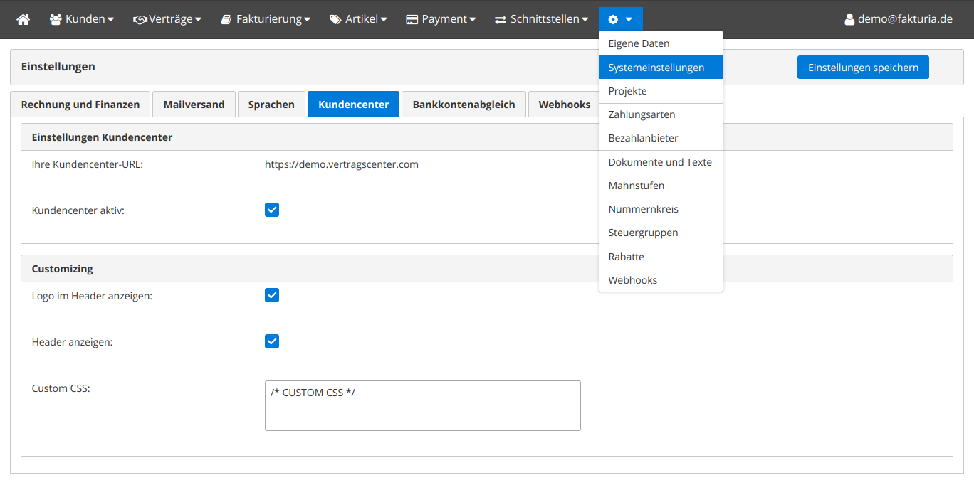 Hier können Sie die Einstellungen für das Kundencenter vornehmen.