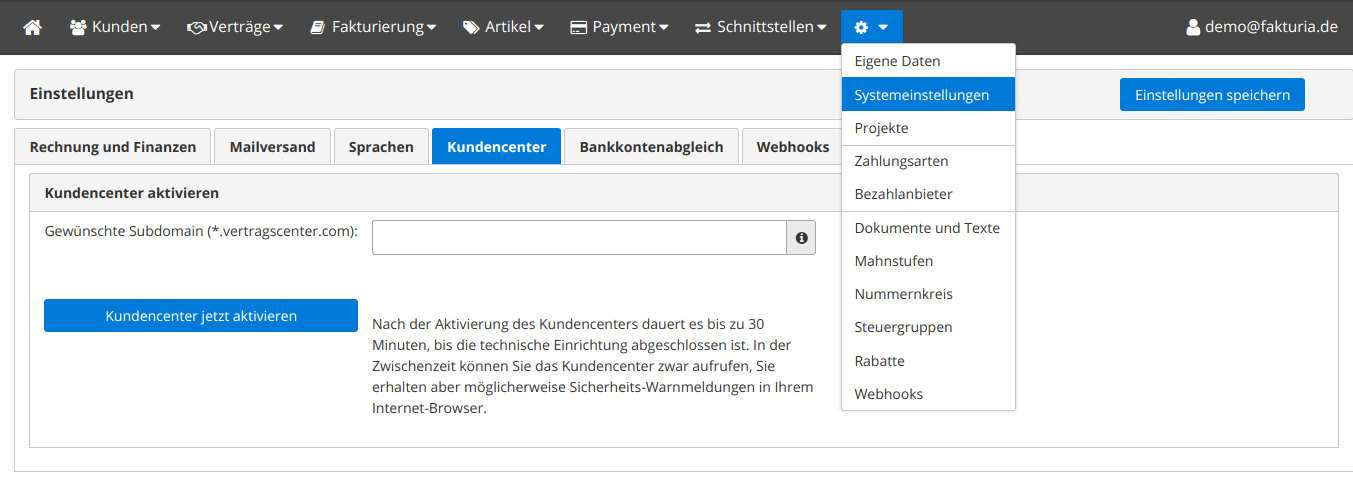 Kundencenter aktivieren¶