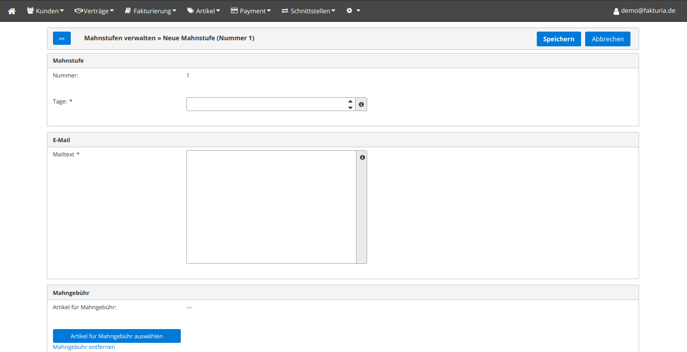 Neue Mahnstufe anlegen¶