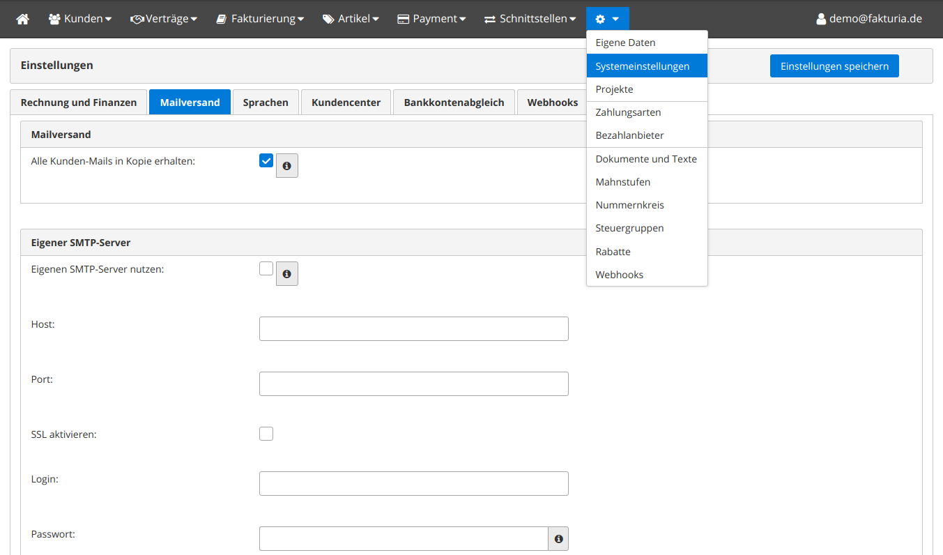 Im Menübereich ⚙️ (Einstellungen) können Sie die Systemkonfiguration bearbeiten.