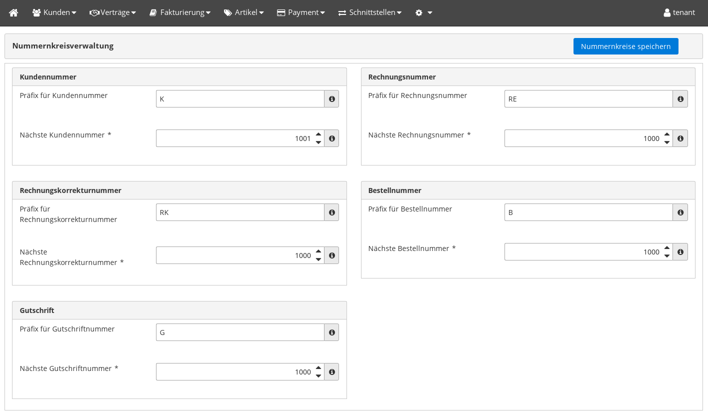 Im Bereich Nummernkreisverwaltung können Sie den Aufbau von fortlaufenden Nummern beeinflussen.