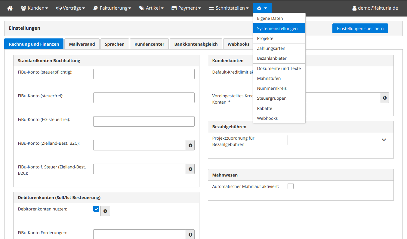Vergessen Sie nicht das Mahnwesen generell zu aktivieren