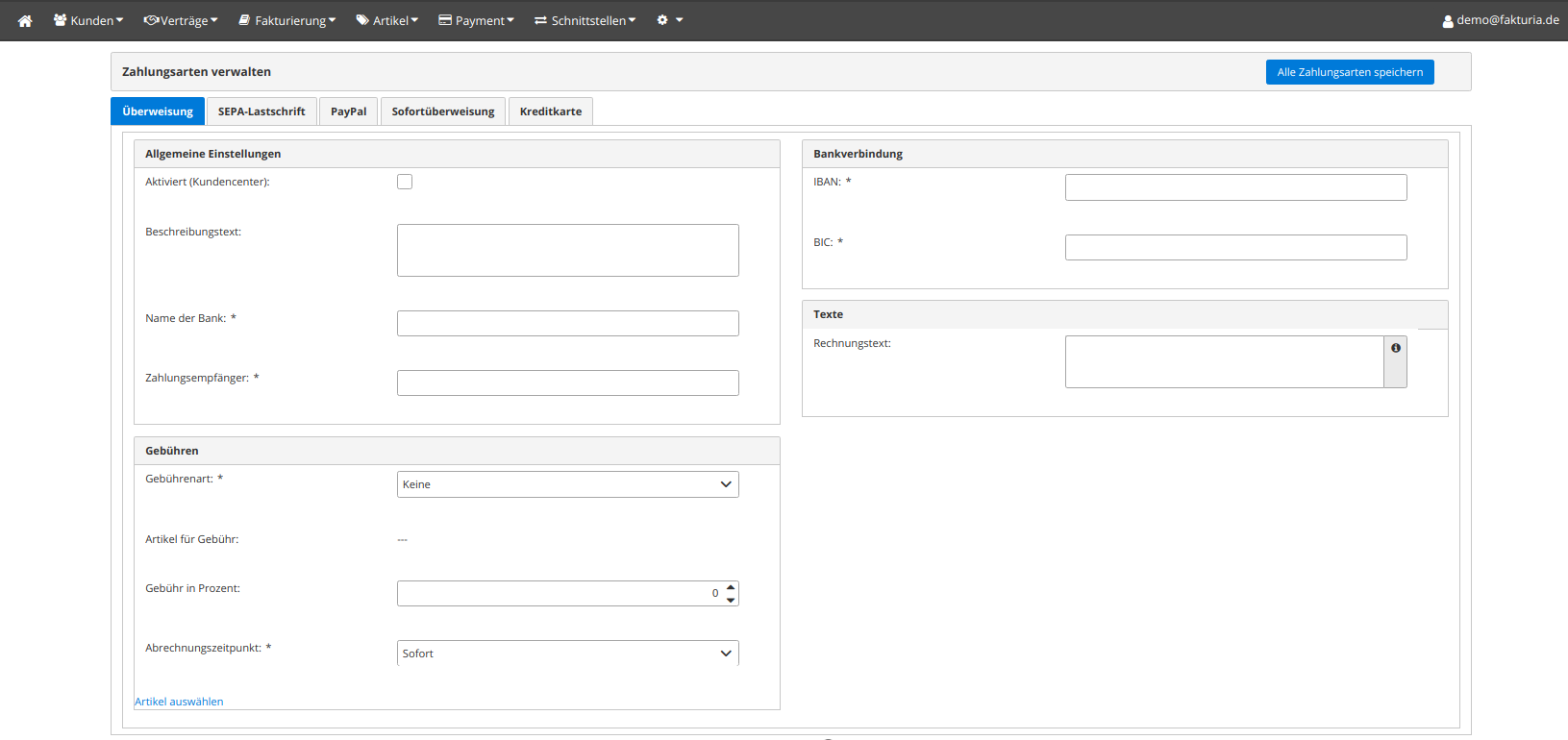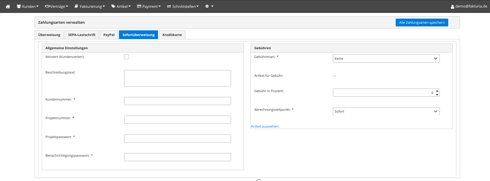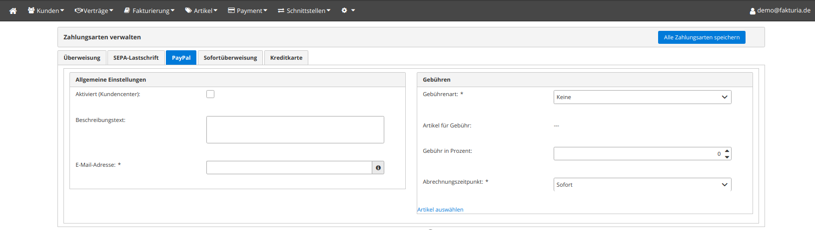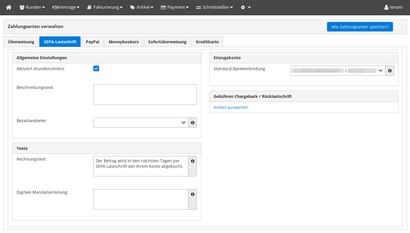 | Checkbox "Aktiviert" | Soll diese Bezahlart zur Verfügung stehen? |