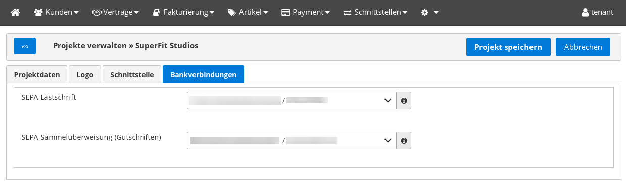 Am Projekt können Bankverbindungen überschrieben werden.