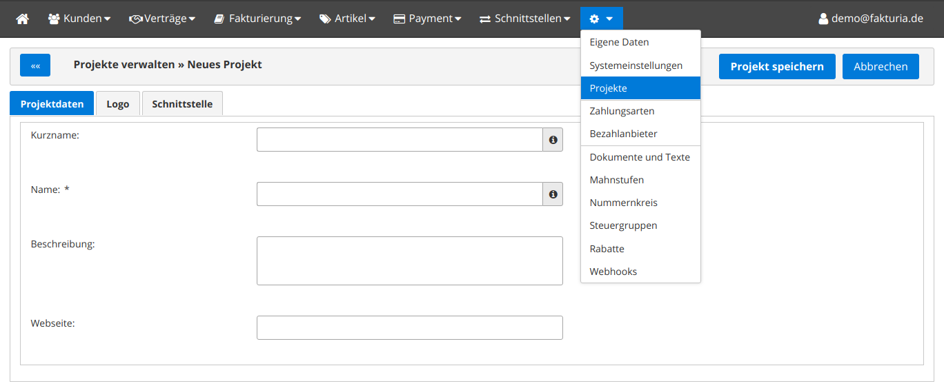 - Kurzname (ein kurzer Schlüssel für das Projekt - nur zur internen/technischen Verwendung)