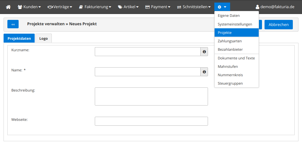 Ein Projekt ist in Fakturia ähnlich wie eine Marke zu betrachten.