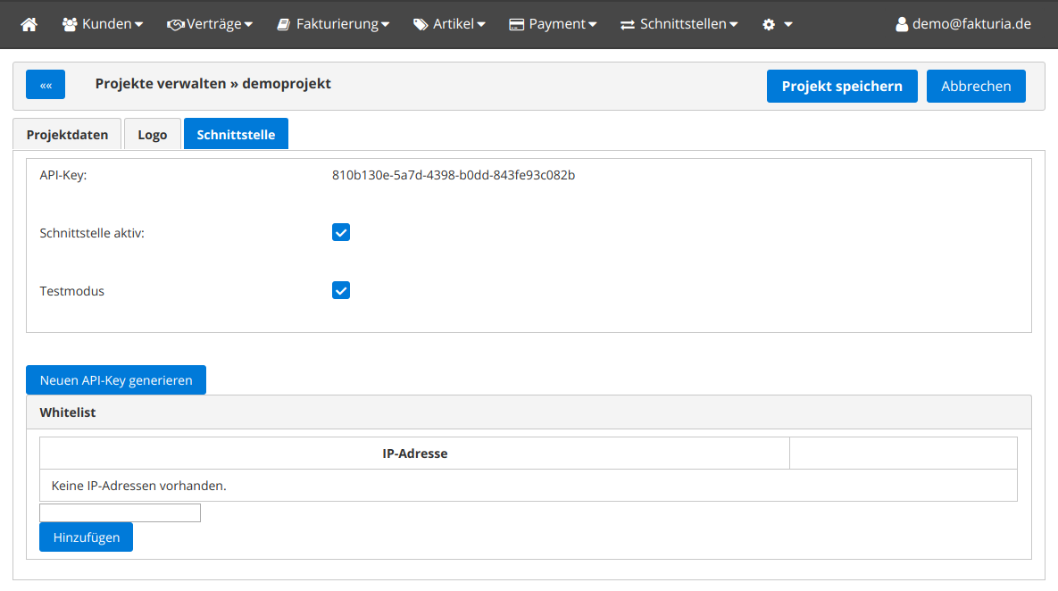 - Whitelist: Wenn Sie den API-Zugriff auf bestimmte IP-Adresse beschränken wollen, tragen Sie diese hier in die Liste ein.