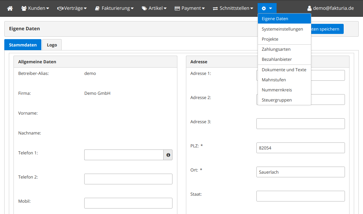 Vervollständigen Sie zunächst alle Daten zu Ihrem Unternehmen, also Firma, Adresse, Telefonnummer etc.